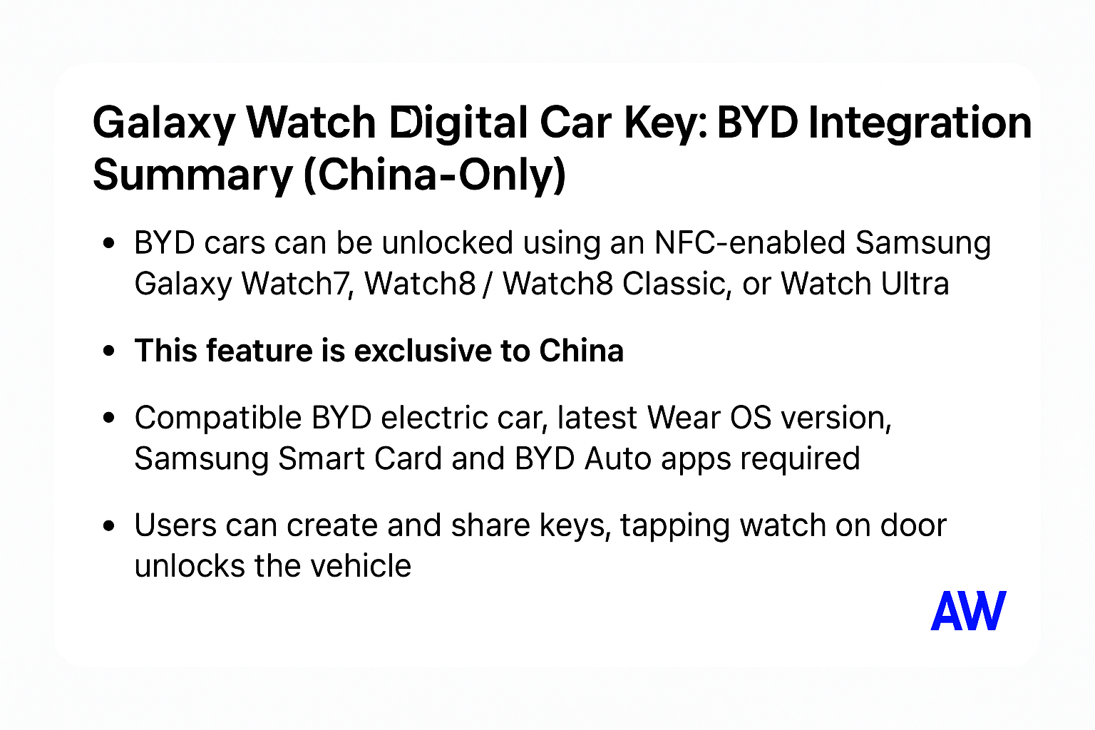 BYD와의 이번 제휴는 삼성 갤럭시 워치가 중국 차량 브랜드와 연동되는 첫 사례입니다.