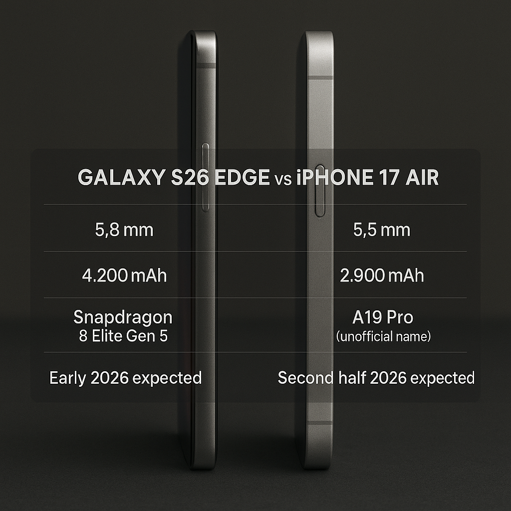이에 비해 갤럭시 S26 Edge는 얇은 두께를 유지하면서도 4,200mAh 배터리와 스냅드래곤 8 Elite Gen 5(가칭)를 탑재할 예정이라, 동급 경쟁 기기 대비 체감 사용 시간이 훨씬 길 것이라는 기대가 나옵니다.
