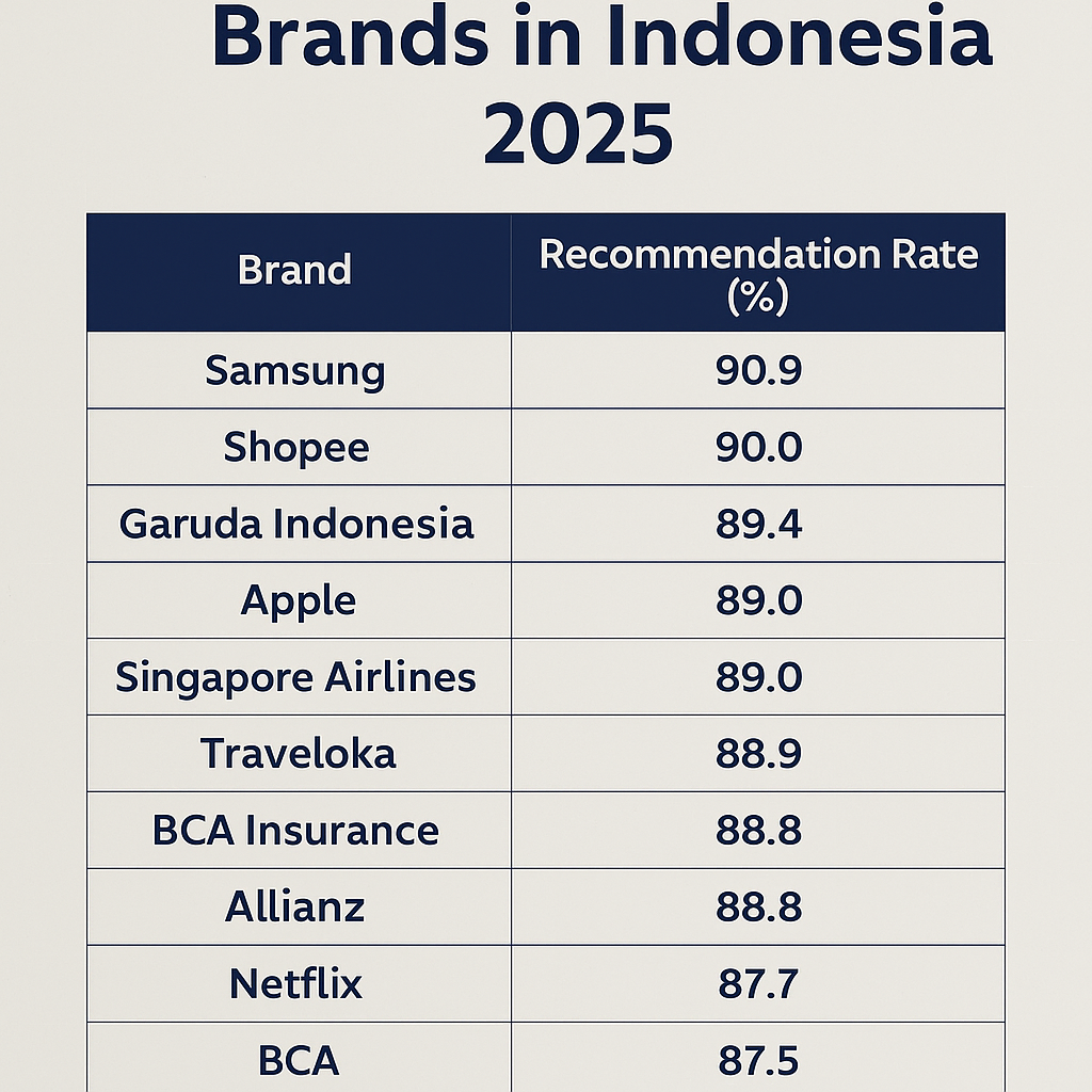 인도네시아에서는 다음 브랜드들이 높은 추천률을 기록했습니다.
