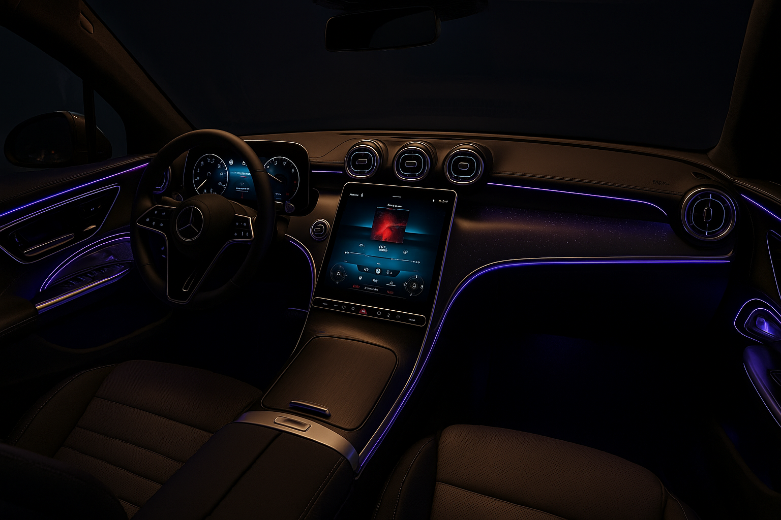 실내에 들어서면 더욱 놀라운 장면이 펼쳐집니다. 메르세데스 특유의 고급스러움에 첨단 디지털 경험을 더한 MBUX 하이퍼스크린이 대시보드 전체를 덮습니다. 운전자뿐 아니라 동승자까지 각자 화면을 제어할 수 있어, 차 안이 곧 엔터테인먼트 센터가 됩니다. 여기에 앰비언트 라이트와 파노라마 글라스 루프가 더해져, 차 안이 단순한 이동 수단이 아니라 “움직이는 라운지”가 됩니다.