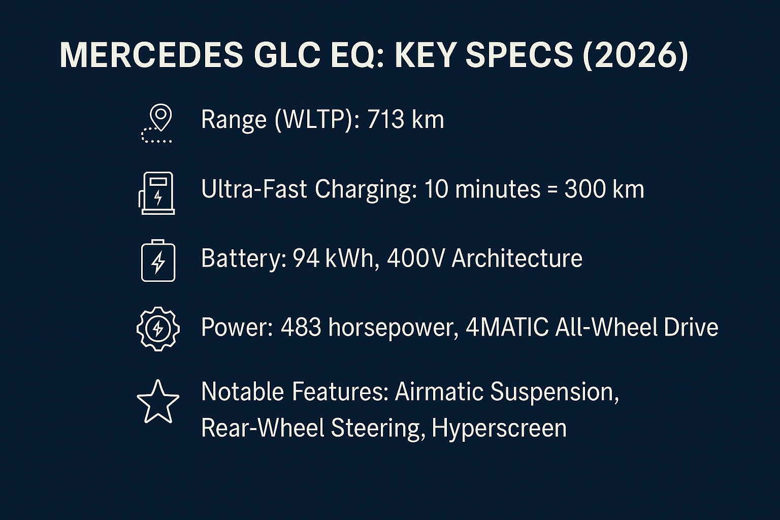 GLC EQ는 단순히 새로운 SUV가 아닙니다. “프리미엄 전기차”가 무엇을 의미해야 하는지를 다시 묻는 모델입니다. 소비자에게는 충전 불안 없는 긴 주행거리, 최첨단 인포테인먼트, 럭셔리한 거주성, 역동적인 퍼포먼스를 모두 제공합니다.