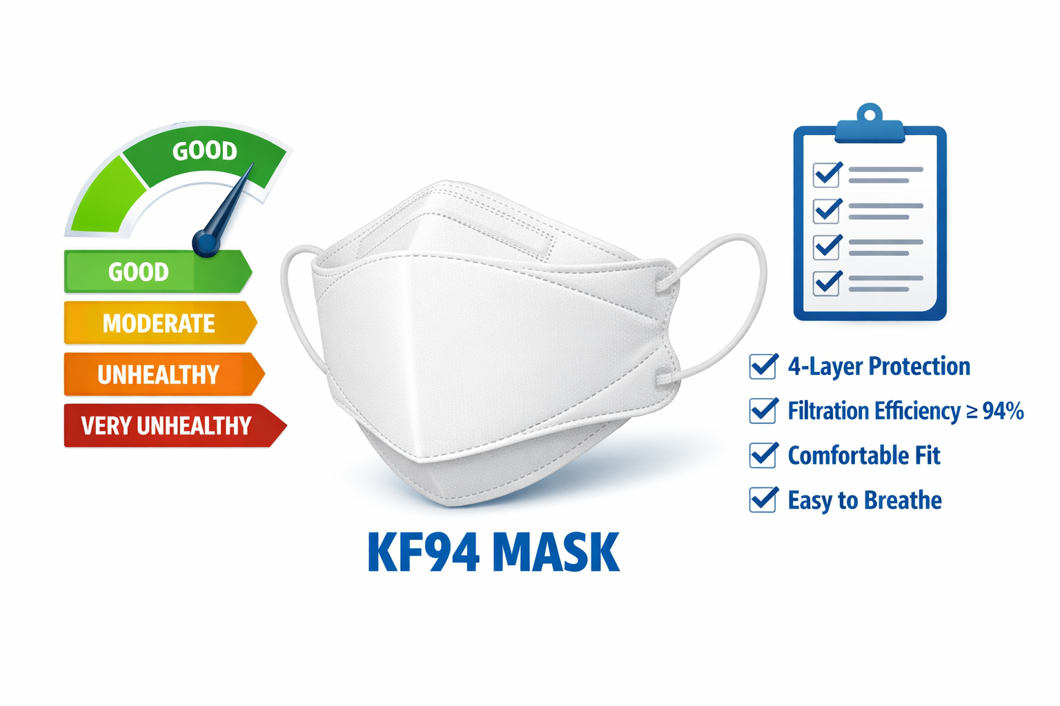 덴탈형(입체형) KF94 마스크를 선택하면 입과 마스크 사이 공간이 생겨 숨쉬기 훨씬 편합니다. Purenature처럼 피부 저자극 소재를 쓴 덴탈형 KF94가 착용감과 차단 성능을 모두 잡은 선택입니다. 또한 마스크를 착용한 채 격한 활동을 하면 더 힘드므로, 미세먼지 심한 날은 야외 활동 강도 자체를 줄이는 것이 중요합니다.