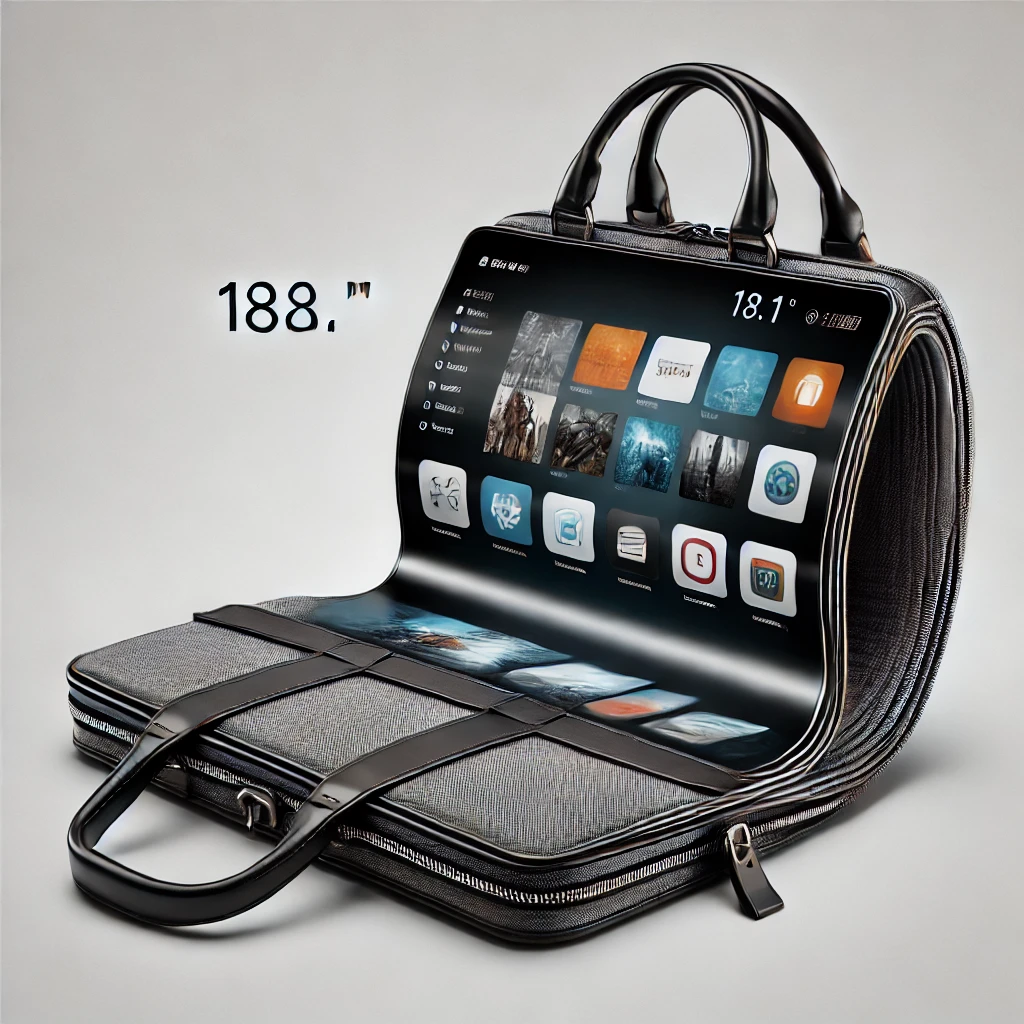 이 디자인은 미래의 여행 기기로서, 유연한 OLED 기술을 활용하여 모바일 디스플레이의 새로운 장을 열고 있습니다. 또한, 비즈니스 환경에서 휴대성과 효율성을 강조하는 기기입니다.