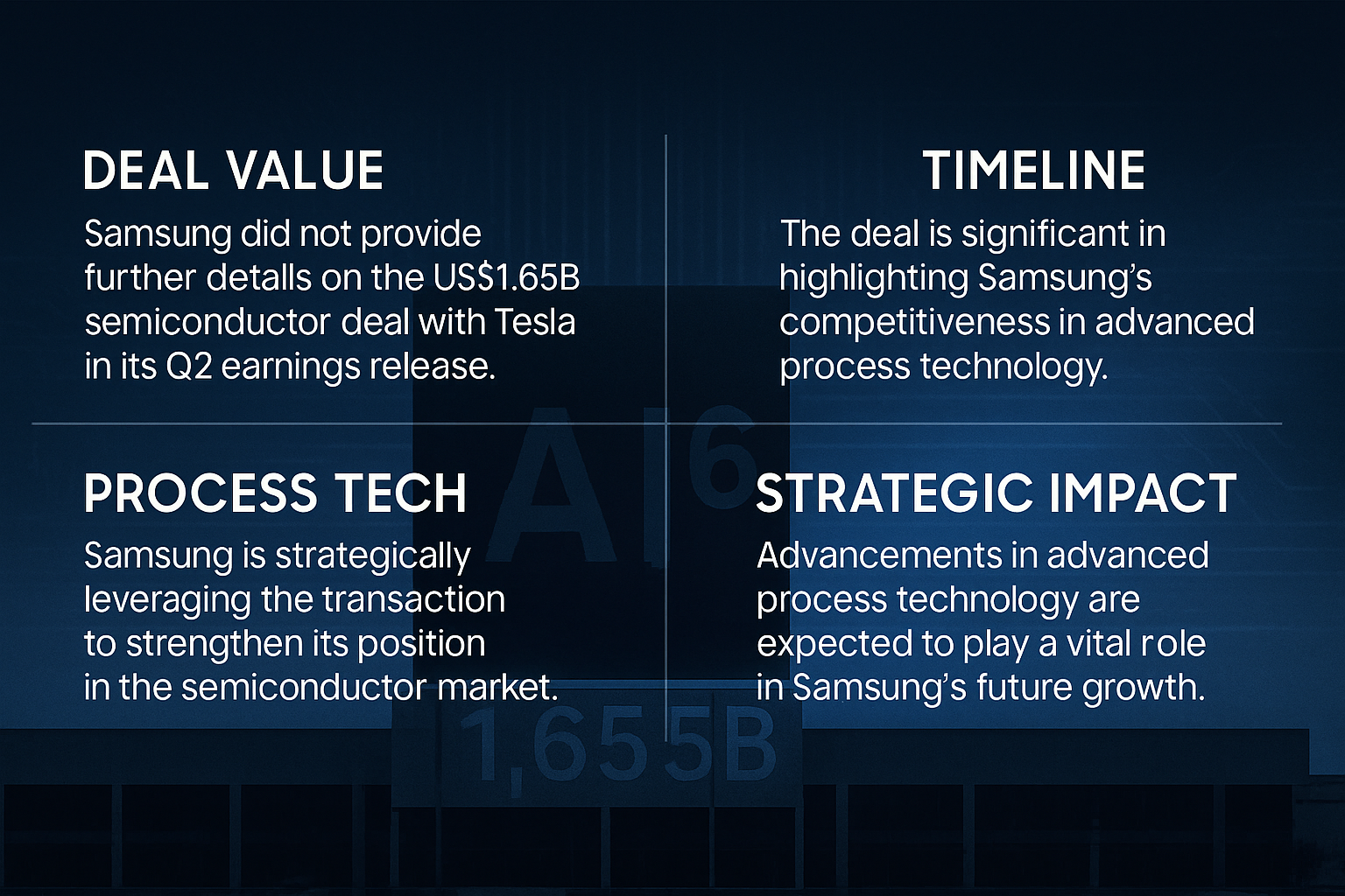 2025년 2분기 실적 발표에서 삼성전자는 조용히 넘어갔다. 16.5억 달러 규모의 테슬라 반도체 공급 계약에 대해 공식적인 추가 정보는 없었다. 그러나 시장은 알고 있다. 이 거래가 단순한 수치나 숫자를 넘어 삼성의 미래 반도체 전략을 꿰뚫는 키라는 사실을 말이다.