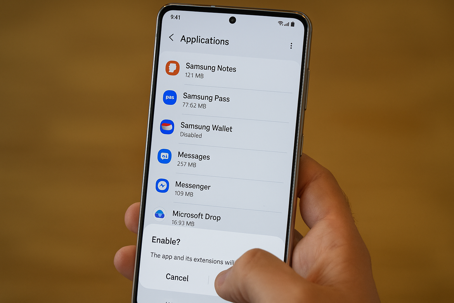 삼성의 전화, 메시지, 갤러리, 보안 관련 앱 등은 시스템과 깊이 연동되어 있어 완전 삭제가 불가능합니다. 하지만 비활성화만 해도 사실상 실행되지 않으므로, 사용자 경험은 크게 달라집니다.
