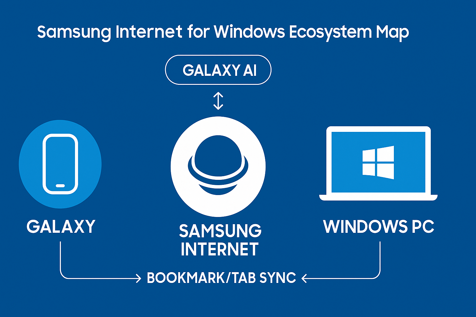 이로써 사용자는 PC에서도 갤럭시 스마트폰과 유사한 환경을 경험할 수 있게 되었고, 삼성 계정을 통한 북마크·탭·히스토리 동기화가 가능해졌습니다.