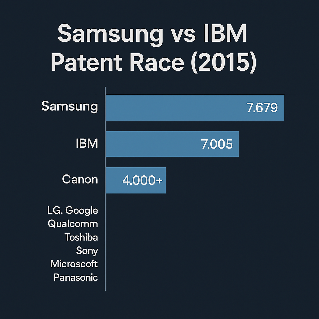 2015년, 삼성이 IBM을 제치고 미국 특허 1위에 오른 사건은 단순히 ‘7,679건 vs 7,005건’이라는 수치 싸움이 아니었습니다. 그것은 곧 한국 기술 기업이 세계 무대에서 독자적 경쟁력을 확보했다는 선언이었으며, 국가 기술력과 기업 전략의 결합이 낳은 성과였습니다.