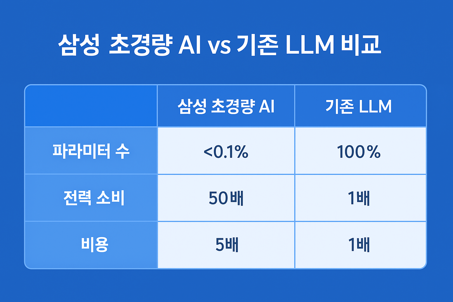 구분 | 기존 LLM(GPT, Gemini 등) | 삼성 초경량 모델 |