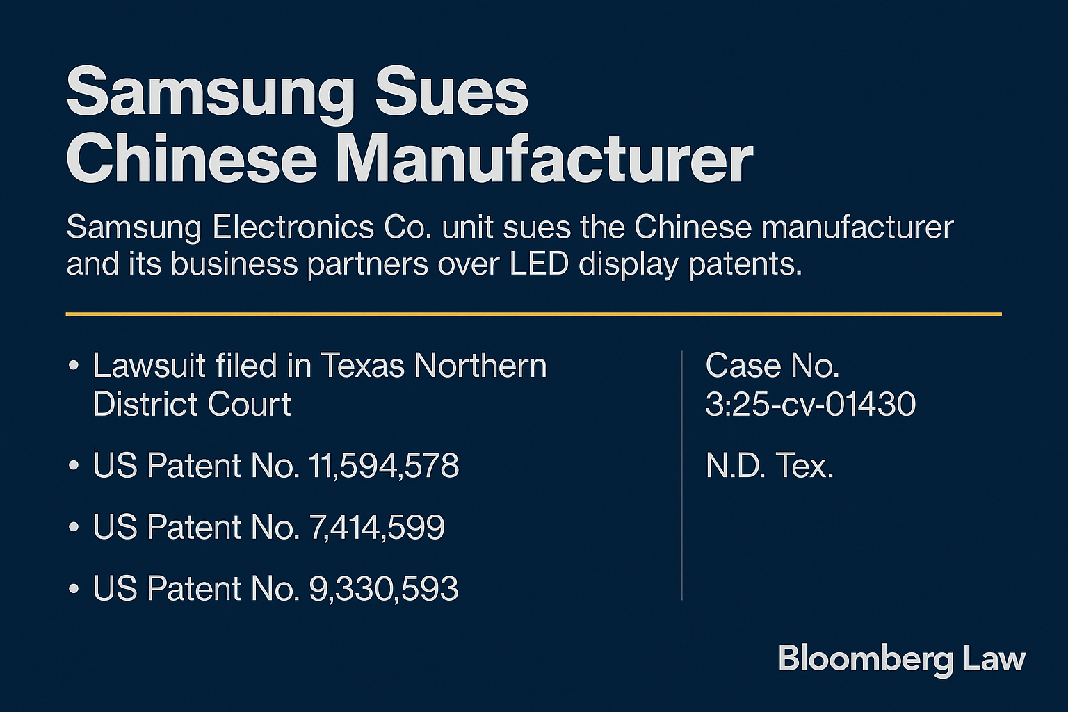 삼성은 이 사건을 텍사스 북부 지방법원(Northern District of Texas)에 제기했습니다. 이 지역 법원은 기술 특허 소송에서 빠른 판결과 높은 전문성으로 유명하며, 특히 디스플레이 및 반도체 관련 소송의 관할지로 자주 활용되고 있습니다.