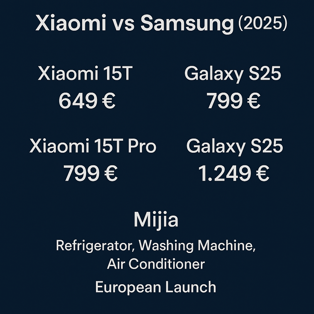 2025년 9월, 중국의 거대 IT 기업 샤오미가 독일 뮌헨에서 샤오미 15T와 샤오미 15T 프로페셔널을 공개했습니다. 두 모델은 각각 649유로(약 76만 원), 799유로(약 94만 원)라는 경쟁력 있는 가격으로 등장했으며, 이는 삼성 갤럭시 S25(799유로)와 갤럭시 S25 울트라(1,249유로) 보다 확실히 저렴합니다. 단순히 스마트폰 하나만 내놓은 것이 아니라, 미지아(Mijia) 브랜드 가전제품을 유럽 시장에 함께 출시하면서 삼성의 글로벌 전략을 정면으로 겨냥했습니다.