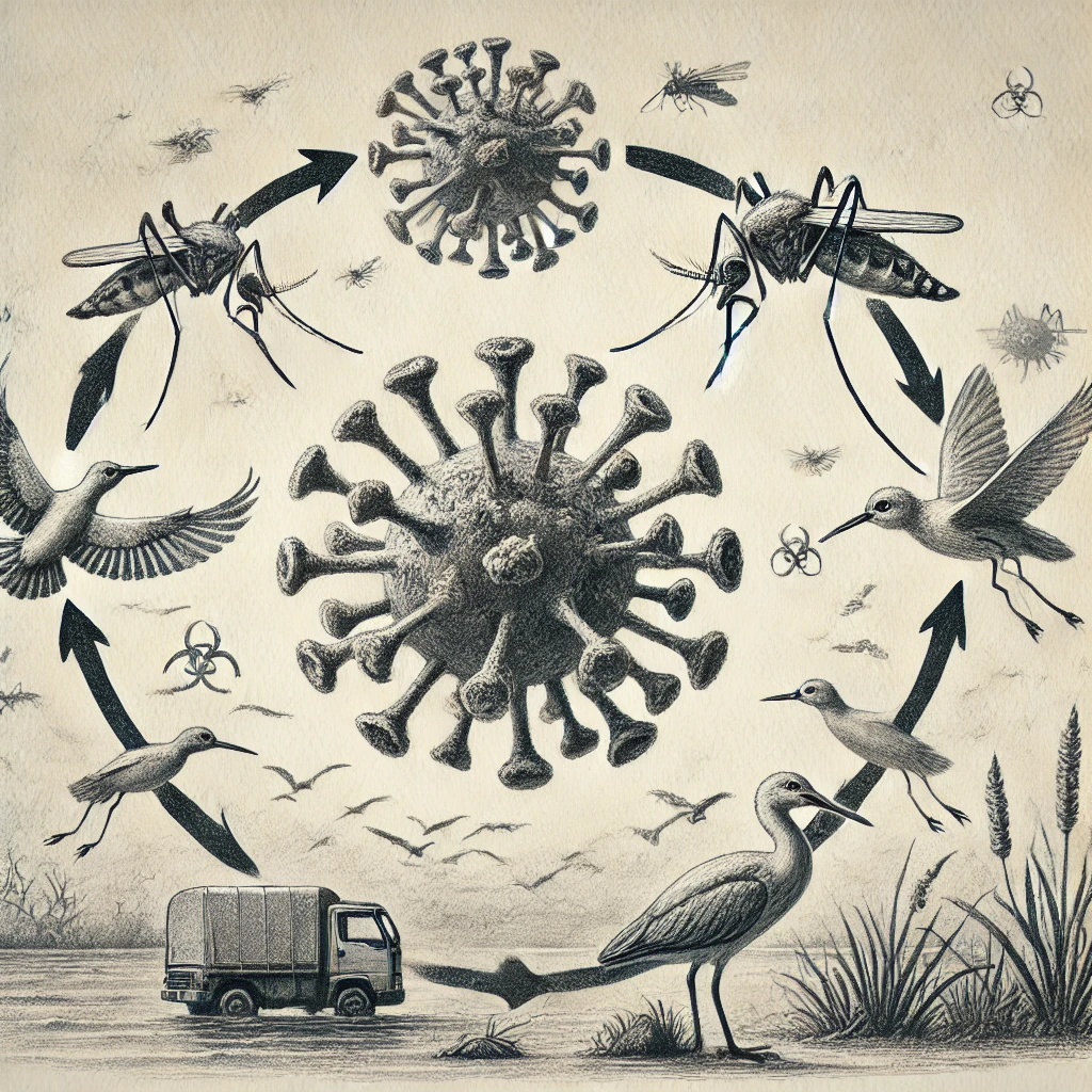 → Culex 모기가 감염된 조류의 피를 빨면서 바이러스가 모기의 몸속으로 들어감. - 모기가 인간을 흡혈할 때 바이러스 전파 가능
