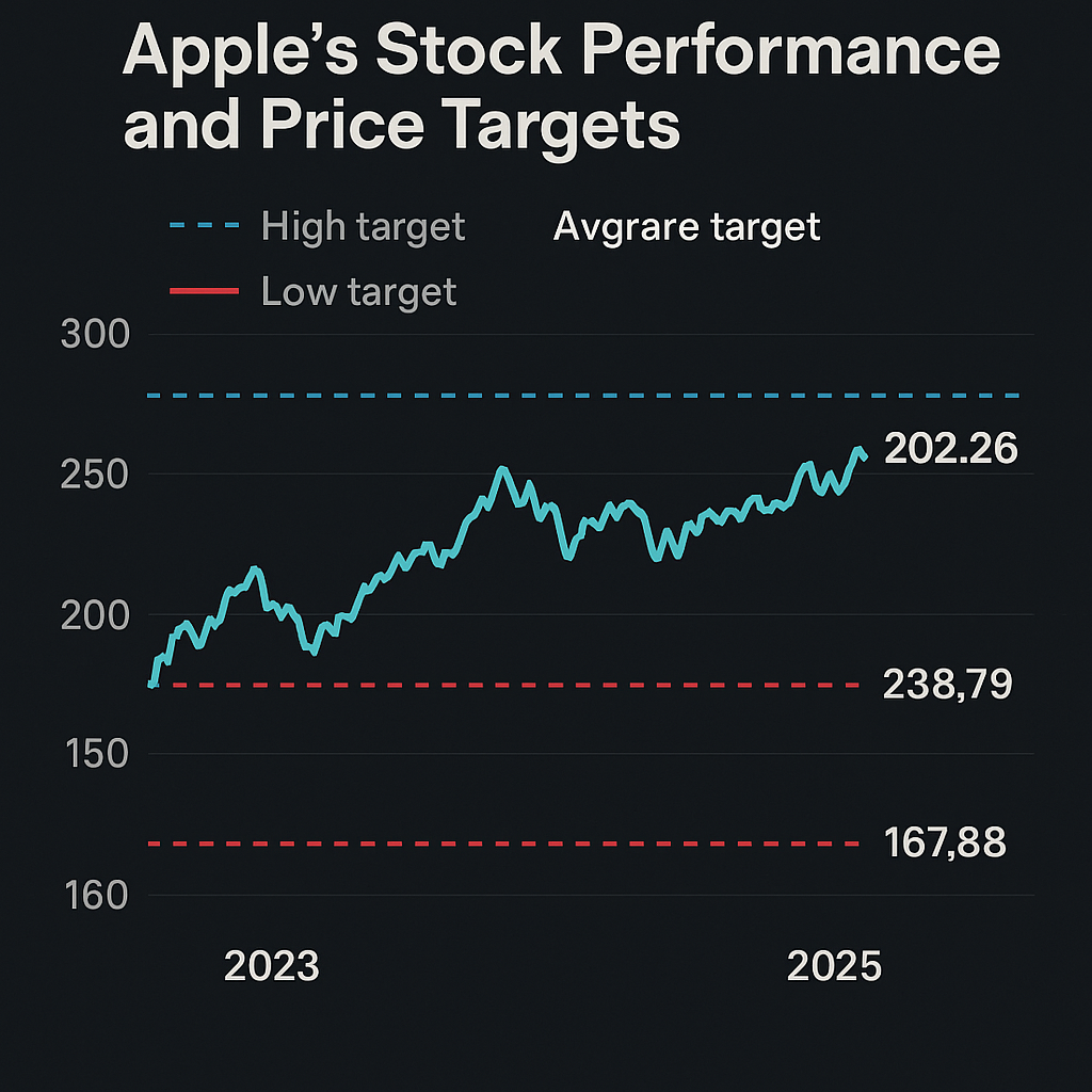 2025년 현재, 애플의 주가는 202.26달러로 소폭 하락한 상태입니다. 그러나 향후 주가에 대한 분석은 다음과 같이 상이합니다: