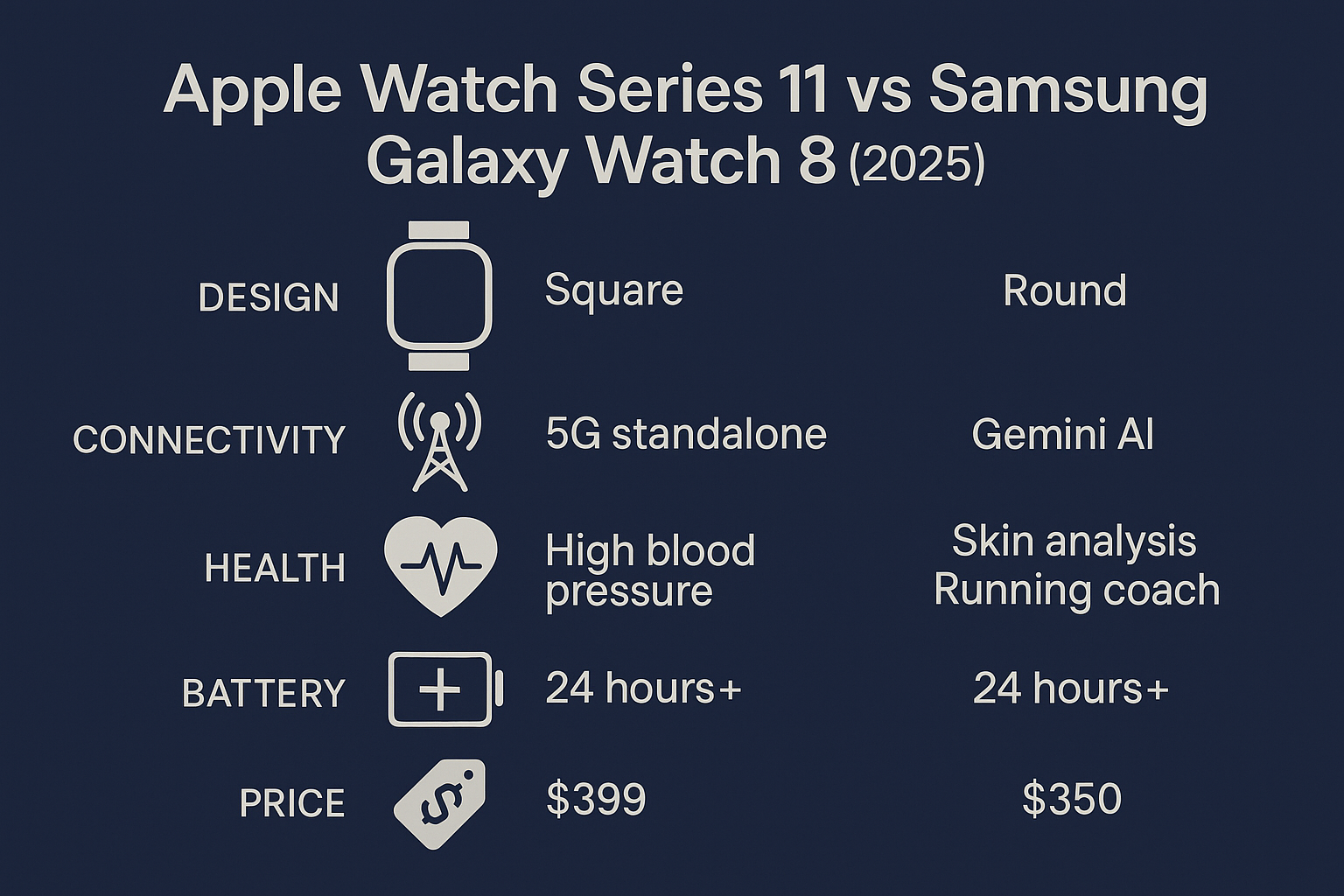 2025년 9월, 글로벌 스마트워치 시장은 다시 한번 뜨거운 경쟁 구도로 들어섰습니다. 애플은 애플 워치 시리즈 11을, 삼성은 갤럭시 워치 8을 동시에 내놓으며 웨어러블 혁신을 이끌고 있습니다. 두 모델은 겉보기엔 비슷하지만, 디자인 철학·헬스케어 기능·배터리·가격·스마트 생태계에서 미묘한 차이를 드러냅니다. 이번 글에서는 두 워치의 차별점과 소비자에게 주는 의미를 깊이 분석하겠습니다.
