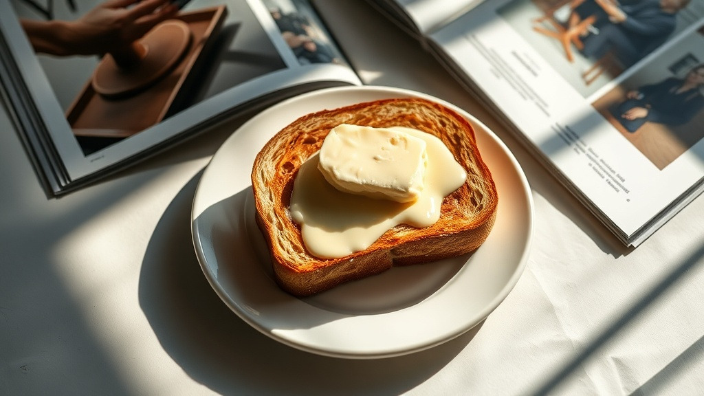 아침 식탁에서 바삭한 토스트 위에 한 스푼 올려지는 버터.