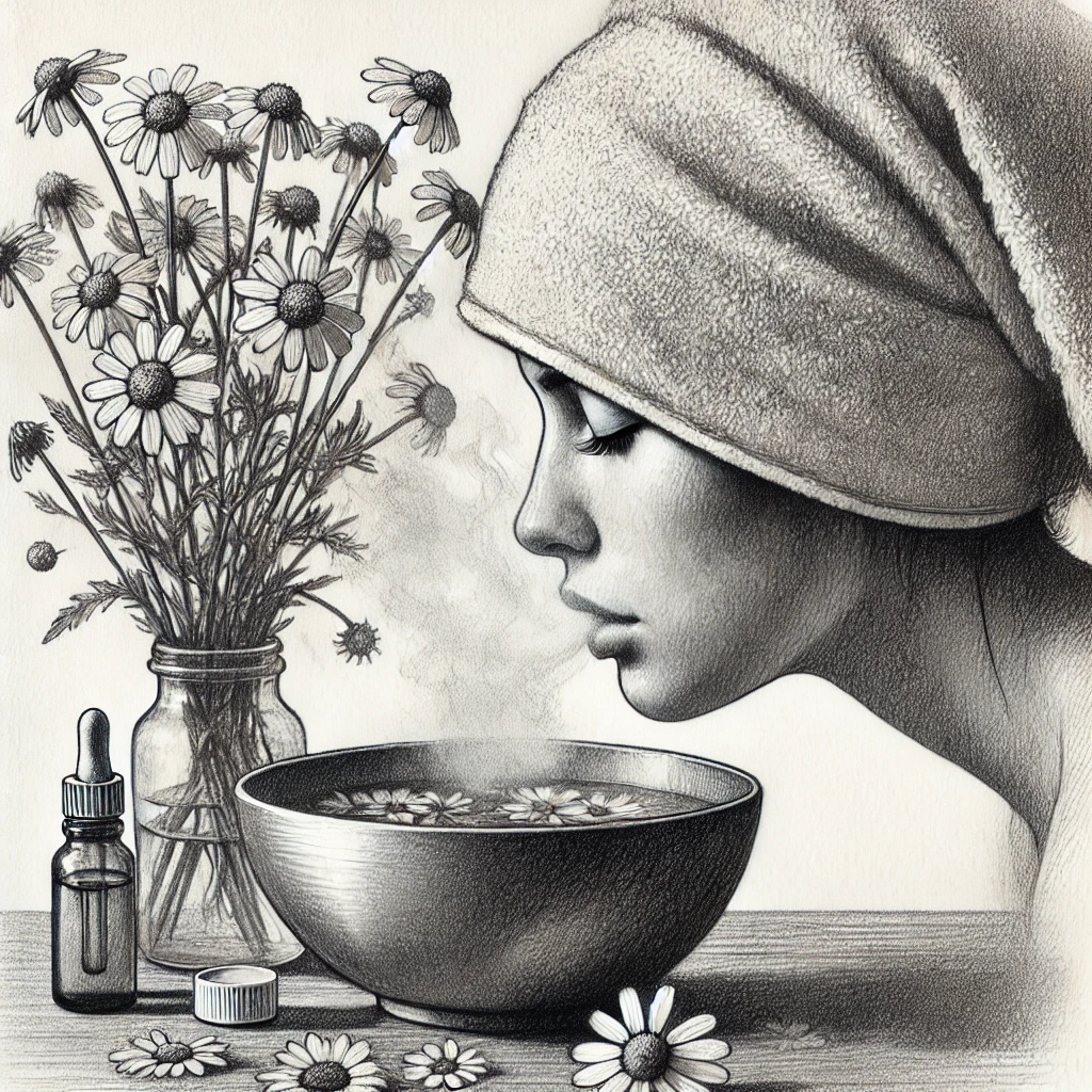 • 끓는 물에 카모마일 꽃을 넣고 증기를 흡입하면 코막힘과 가래 제거에 도움이 됩니다.