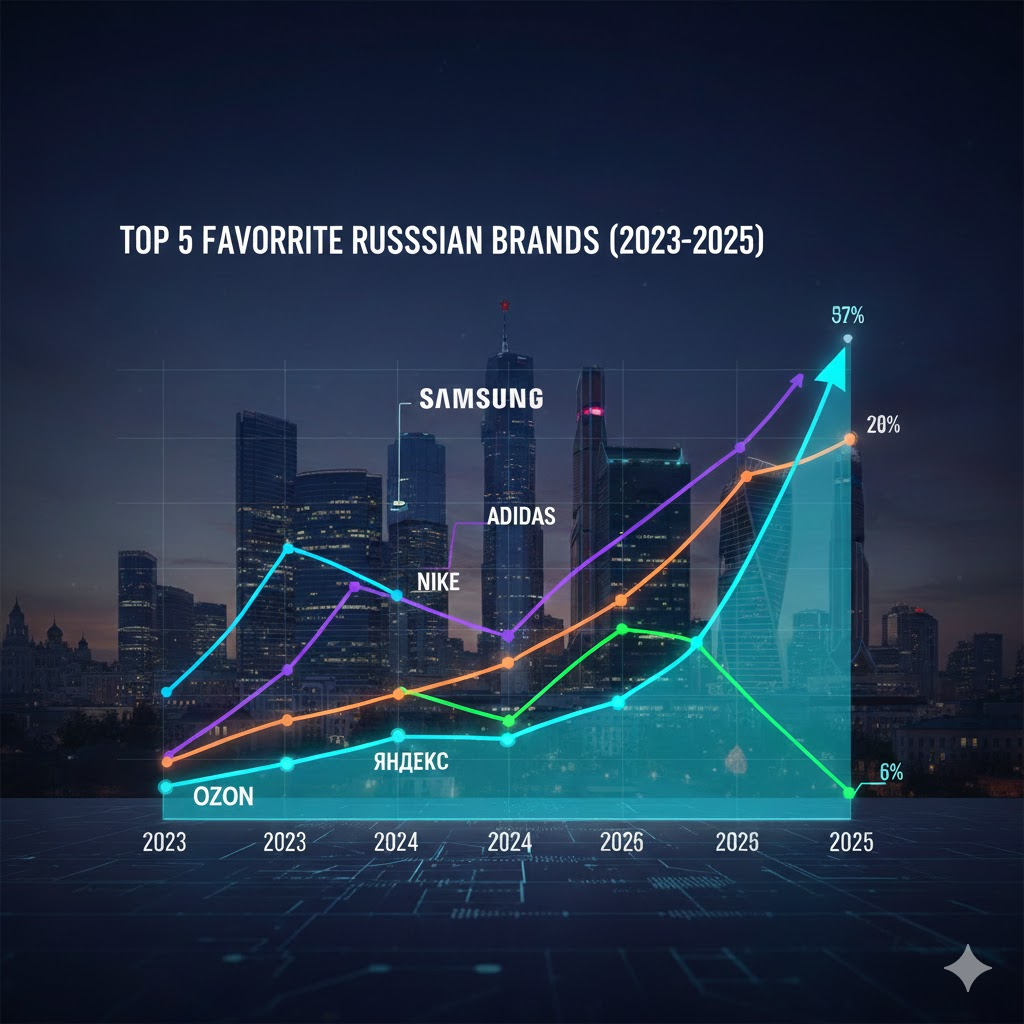 가장 극적인 시장 변화는 '톱 5'의 구성에서 나타났습니다. 2025년 브랜드 순위에서는 러시아의 국내 브랜드 두 축인 얀덱스와 오존이 각각 4위와 5위를 차지하며 처음으로 선두 그룹에 합류했습니다.