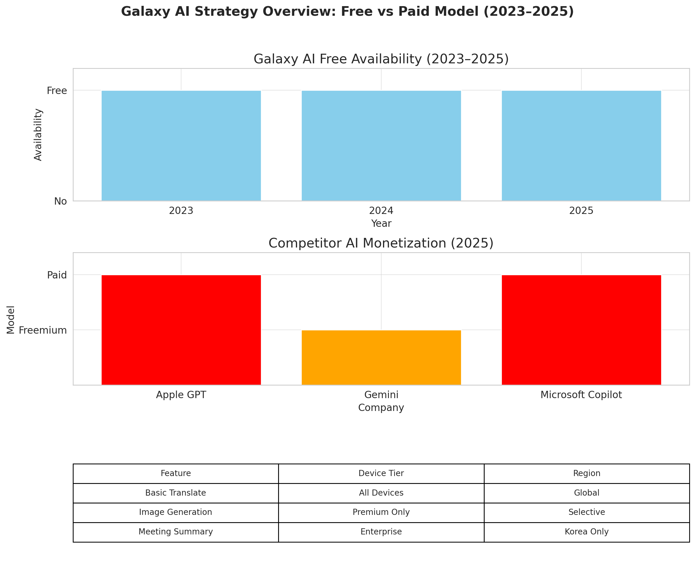 <Galaxy AI 전략 요약: 무료 vs 유료 모델 비교>