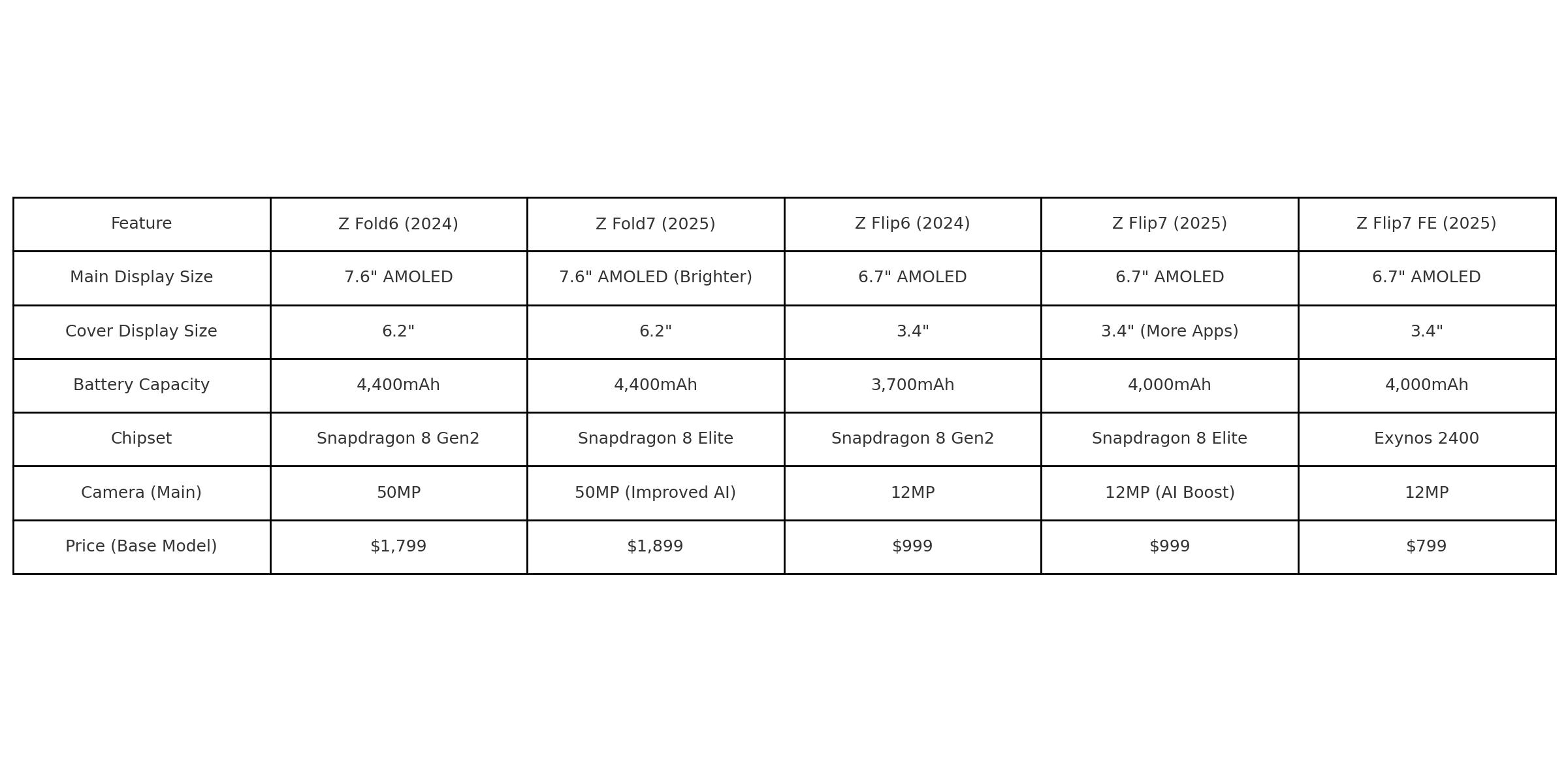 <삼성 폴더블폰 2024 vs 2025 기능/가격 변화 요약>
